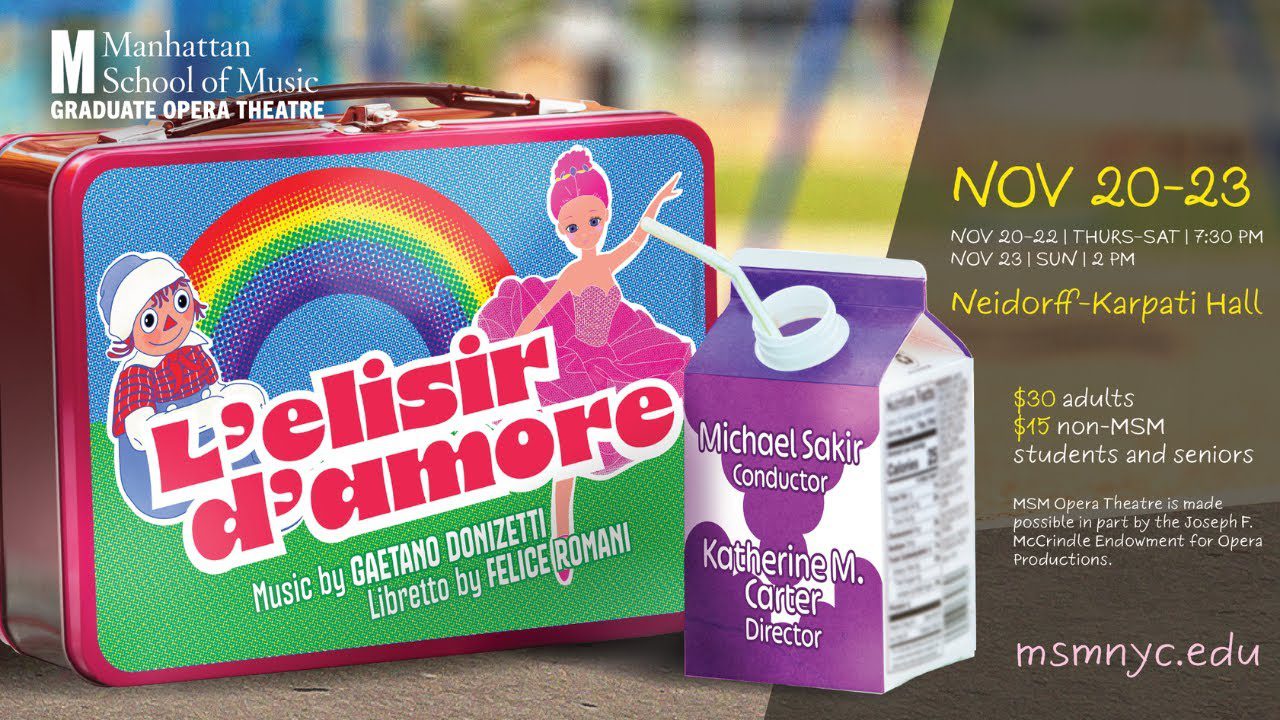 Manhattan School of Music Graduate Opera Theatre presents L’ELISIR D’AMORE, NOV 20-23. Enjoy this preview of the …